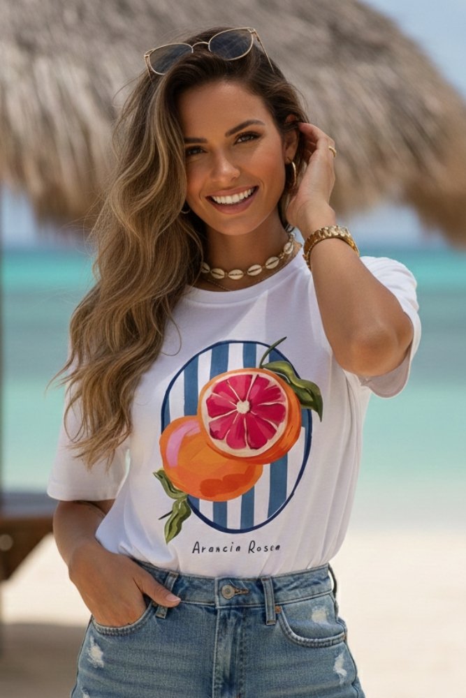 Camiseta Feminina Algodão Estampada – Arancia Rossa