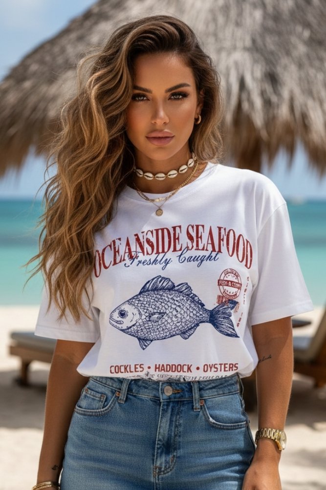 Camiseta Feminina Algodão Estampada – Oceanside Seafood